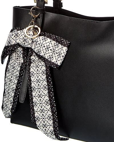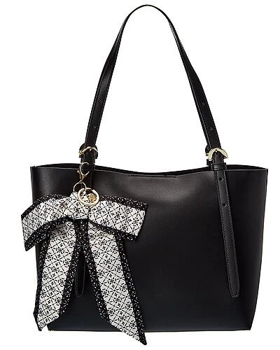 - Medium Leather Tote in black leather and gold-tone hardware with logo charm and printed scarf accent