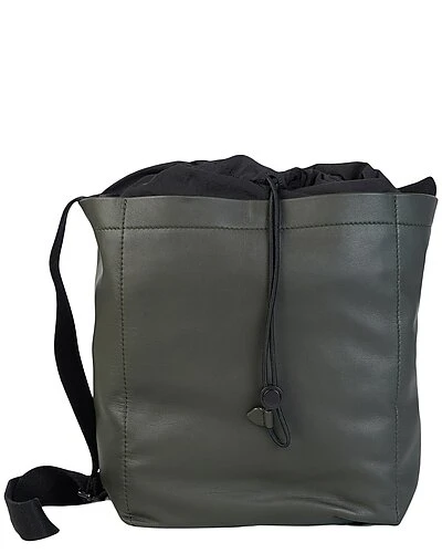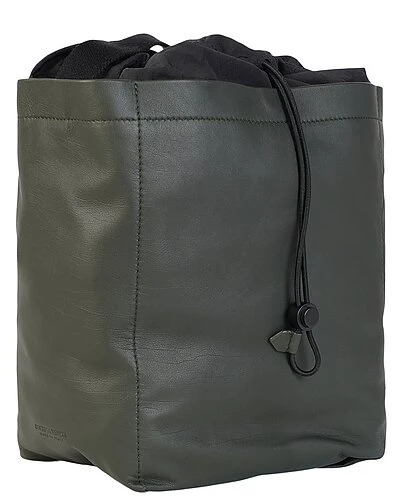 - Drawstring Box Leather Messenger Bag in dark green leather with adjustable shoulder strap