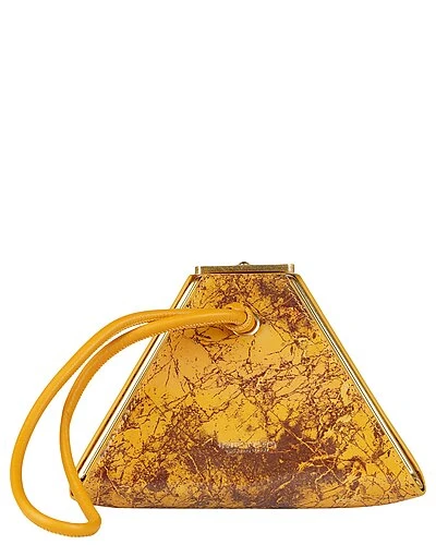 - Pyramid Pattern Leather Clutch in eggnog leather with logo embossed design