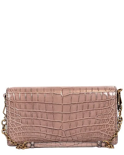 - Snake-Embossed Leather Clutch in grey leather and silver-tone hardware with clasp closing and chain strap