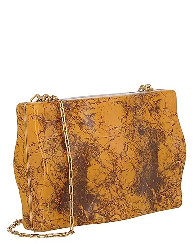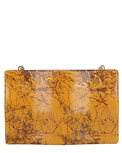 - Spazzolato Leather Clutch in eggnog leather and gold-tone hardware with marble-like design