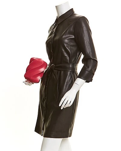 - The Whirl Leather Clutch in pink leather and gold-tone hardware