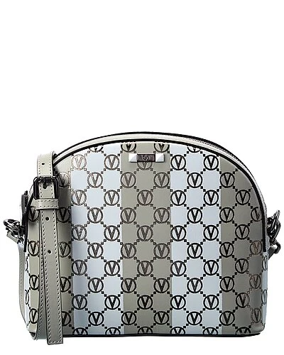 - Diana Monogram Leather Crossbody in dove grey and white leather and gunmetal-tone hardware with monogram print