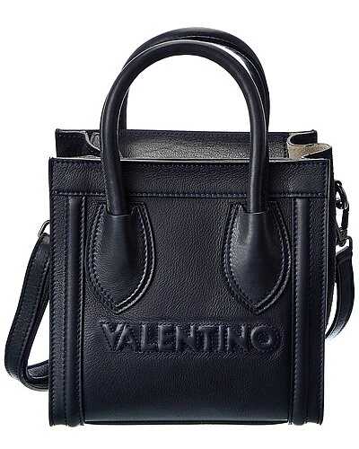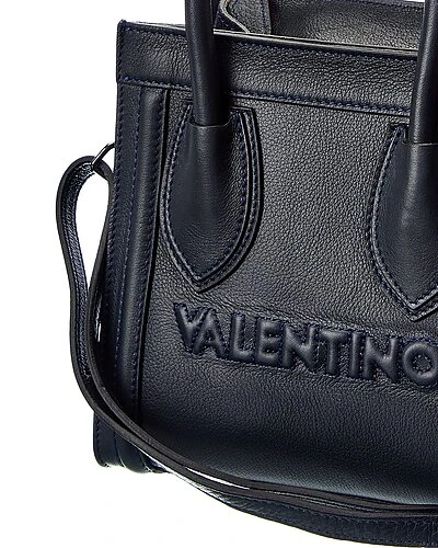 - Eva Embossed Leather Tote in midnight blue leather and gunmetal-tone hardware with embossed design