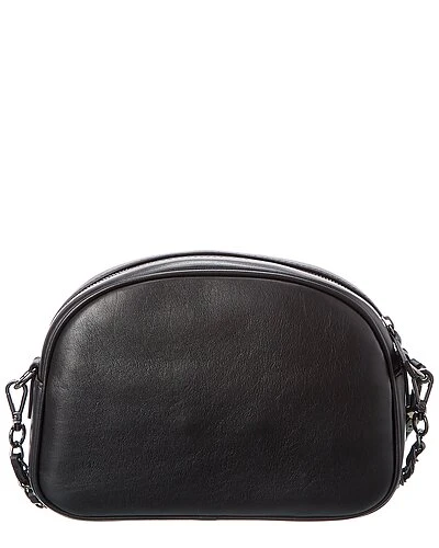 - Harper Signature Leather Crossbody in black leather and gunmetal-tone hardware with stitched logo and tassel accent