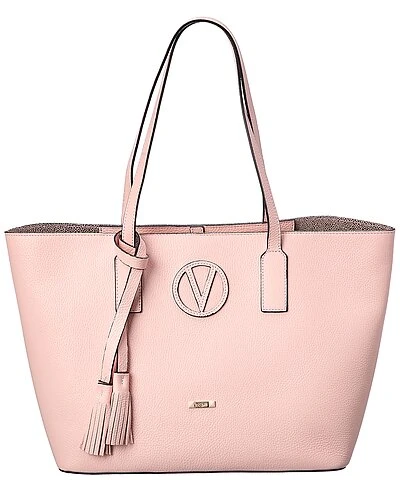 - Soho Medallion Leather Tote in Cadillac rose leather and gold-tone hardware with removable tassel and logo-embossed front