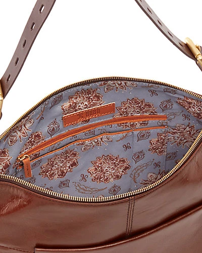 - Exterior design details: matte gold-tone hardware, slip pocket on front and back with hidden magnet closure