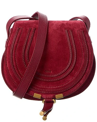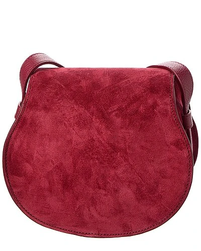 - Marcie Small Suede Crossbody in dark ruby suede with gold-tone hardware