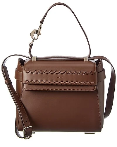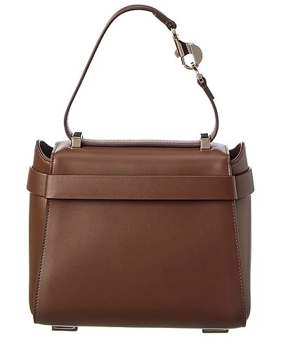- Nacha Leather Shoulder Bag in brown leather and gold-tone hardware with whipstitch detailing