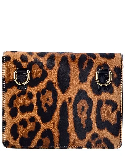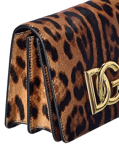 - 3.5 Haircalf & Leather Crossbody in leopard haircalf and black leather and gold-tone hardware with logo accent