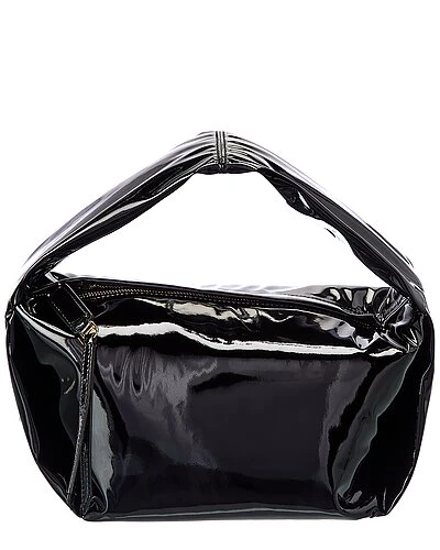 - Branded Tag Patent Hobo Bag in black patent leather and gold-tone and silver-tone hardware with logo plaque
