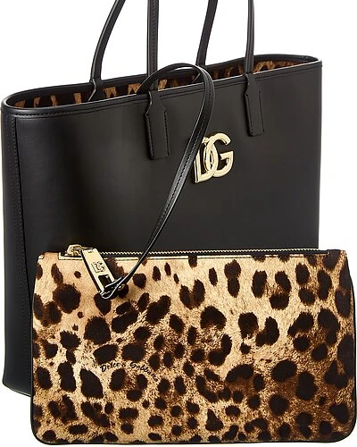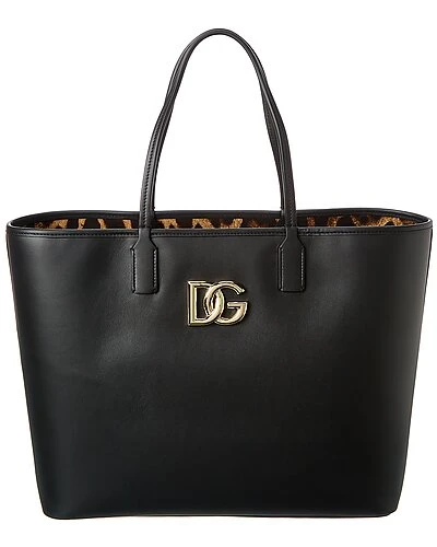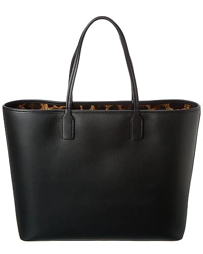 - Fefe Medium Leather Tote in black leather and gold-tone hardware with logo accent
