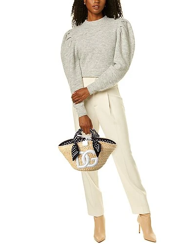 - Kendra Straw & Leather Tote in natural straw and white leather with gold-tone hardware