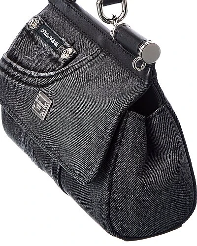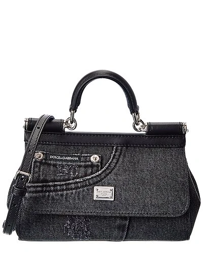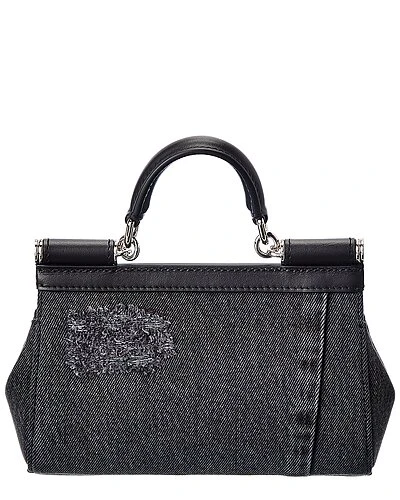 - Sicily Small Patchwork Denim Shoulder Bag in black patchwork denim canvas and leather with silver-tone hardware