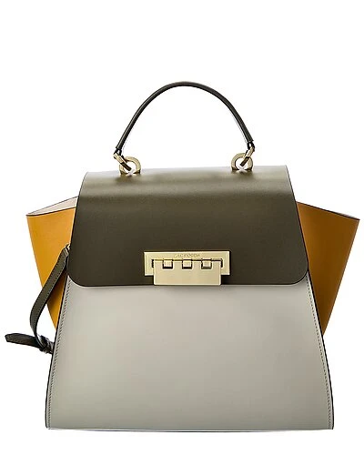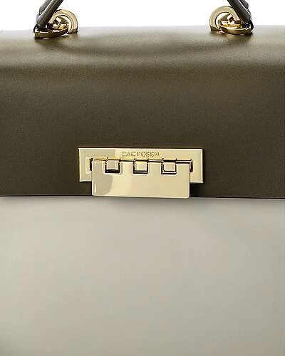 - Eartha Top Handle Colorblocked Leather Shoulder Bag in moss leather and gold-tone hardware with exterior pocket