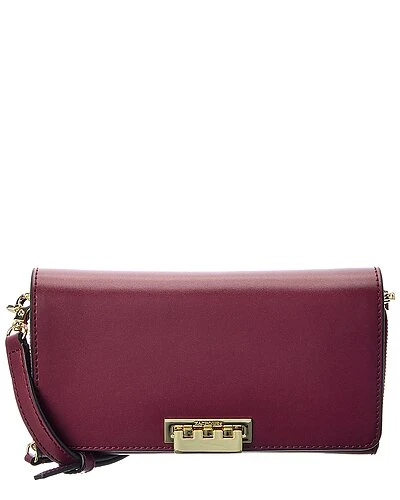 - Earthette Convertible Wallet Leather Crossbody in cabernet genuine cow leather with adjustable, detachable leather crossbody strap