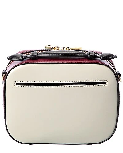 - Earthette Small Box Leather Crossbody in cabernet genuine cow leather with colorblocked design