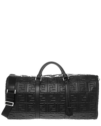 - FF Leather Holdall Bag in black leather with all-over embossed FF monogram and 1 zipped side pocket