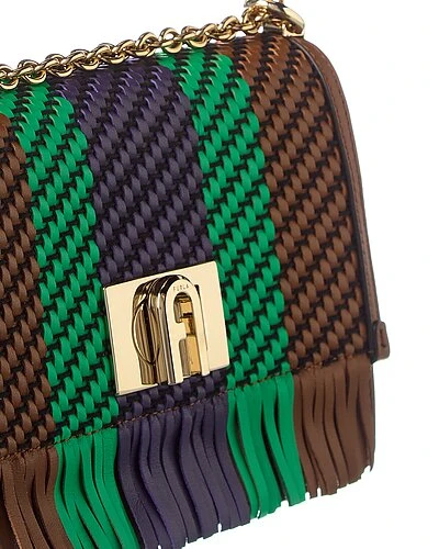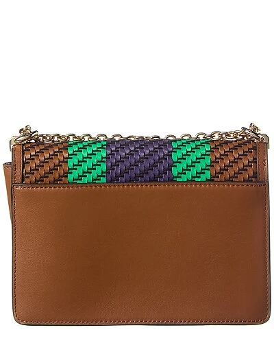 - 1927 Mini Leather Crossbody in cognac, grass and mystic woven leather and gold-tone hardware with fringe detailing, chain strap and exterior pocket