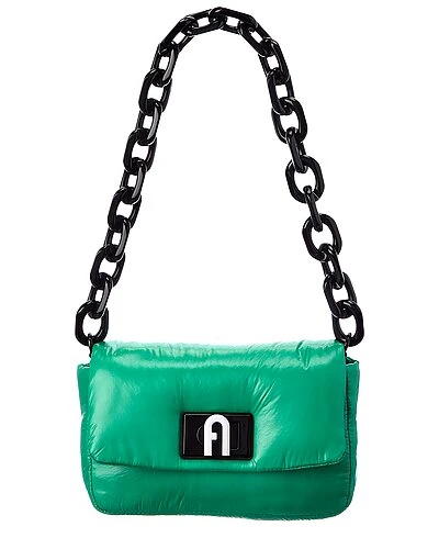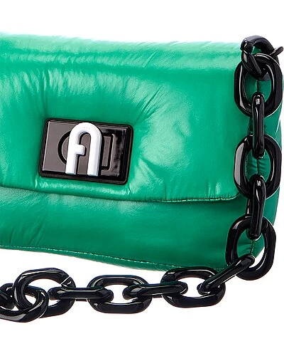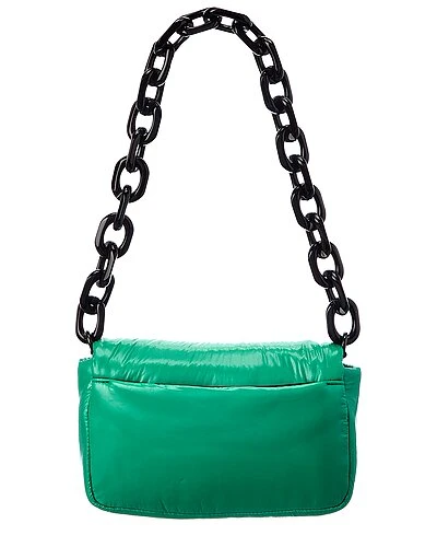 - 1927 Soft Mini Shoulder Bag in jolly green nylon and black hardware with chain strap and exterior pocket