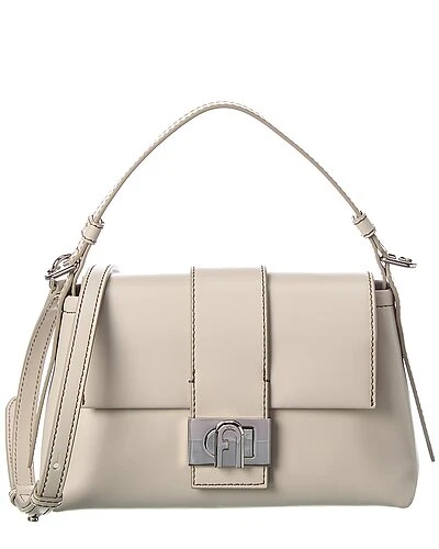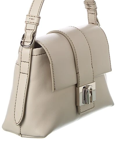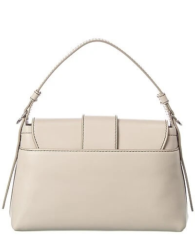 - Charlie Small Leather Shoulder Bag in pearl leather and silver-tone hardware with exterior pocket