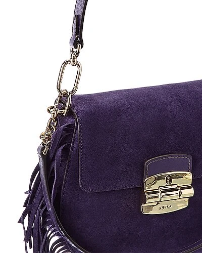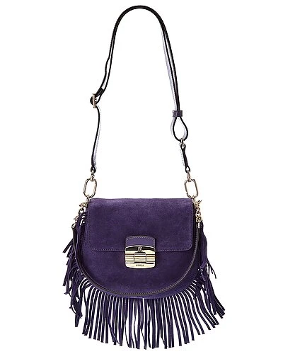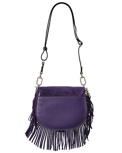 - Club 2 Mini Leather & Suede Crossbody in mystic leather and suede and gold-tone hardware with fringe trim and exterior pocket
