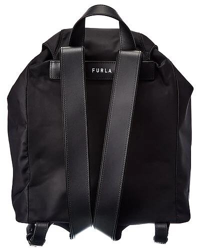 - Furla Marea is a backpack made from nylon fabric. The small size is perfect for travel or leisure. The flap closure with a snap and Arch logo on the front finish the accessory. Silver-tone hardware.
