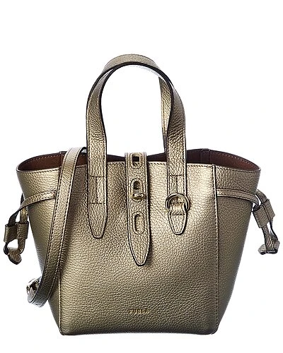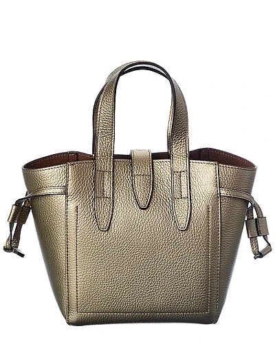 - Net Mini Leather Tote in taupe metal leather and gold-tone hardware