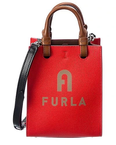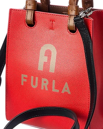 - Furla Varsity Style is a mini shopping bag made from grosgrain leather with a logo pattern. The vertical design is perfect for holding your smartphone and other small personal belongings such as your wallet or lipstick. The double-handle accessory also features an adjustable and removable strap with a leather section, which allows it to be comfortably worn as a shoulder bag or as a crossbody bag. Gold-tone hardware.