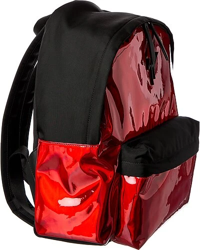 - Bud Vinyl Backpack in red vinyl and black textile and silver-tone hardware with logo accent and zippered pocket