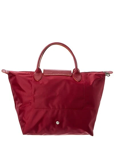 - Le Pliage Club Medium Top Handle Tote in grenat polyamide canvas with inside coating and cowhide trimming and silver-tone hardware with debossed logo at closure and horse embroidery