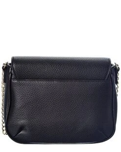 - Color/material: black logo embossed faux leather