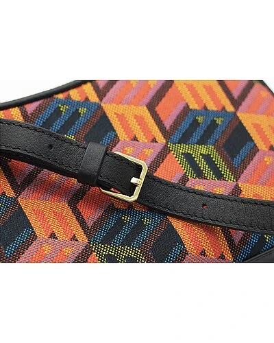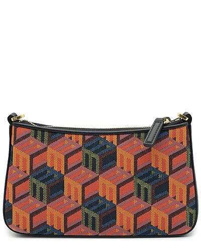 - Cubic Monogram Jacquard & Leather Crossbody in red cubic monogram jacquard and black leather and gold-tone hardware