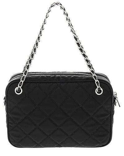 - Bandoliera Nylon Shoulder Bag in black nylon and steel finish hardware with triangle logo and quilted nylon fabric