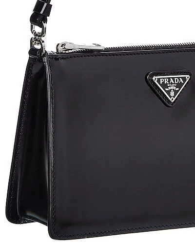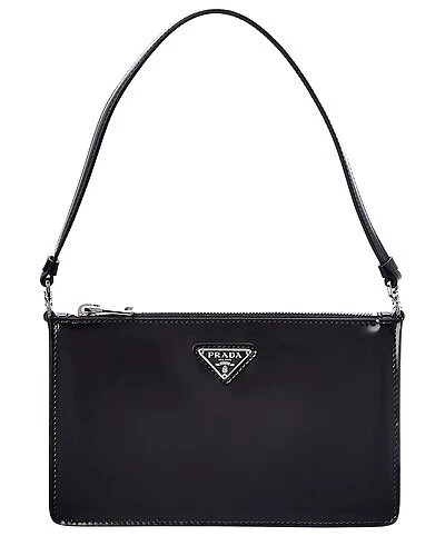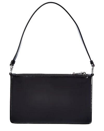 - Cleo Brushed Leather Shoulder Bag in black leather and steel finish hardware with logo accent