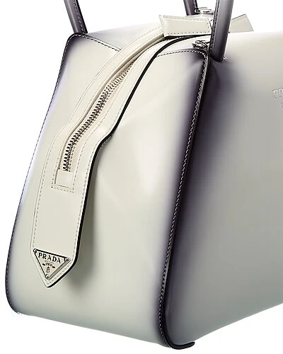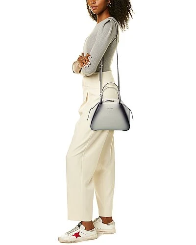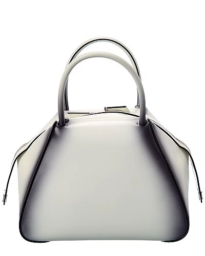 - Logo Small Leather Satchel in white leather and steel finish hardware with logo accent