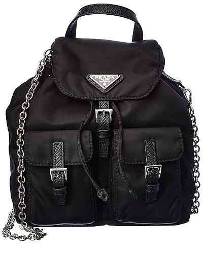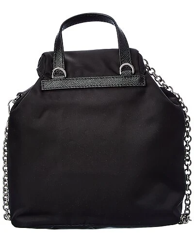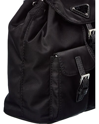 - Mini Vela Backpack in black vela textile and steel finish hardware with logo accent and exterior pockets