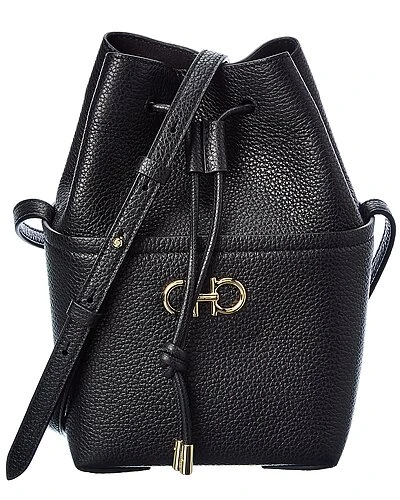 - Gancini Leather Bucket Bag in black leather and gold-tone hardware with Gancini detail