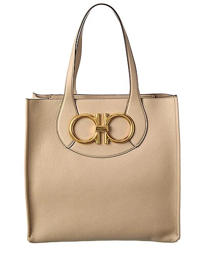 - Maxi Gancio Leather Tote in daino leather with gold-tone hardware and Gancini details