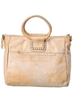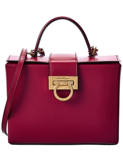 - Trifolio Top Handle Leather Satchel in melagrana leather and gold-tone hardware with Gancini accent