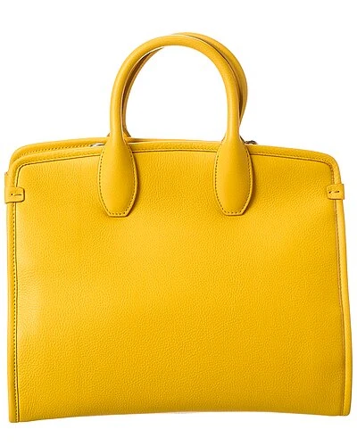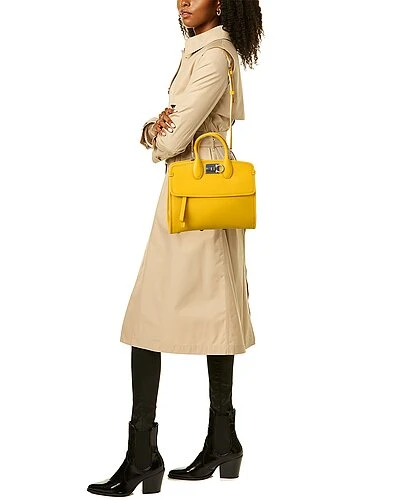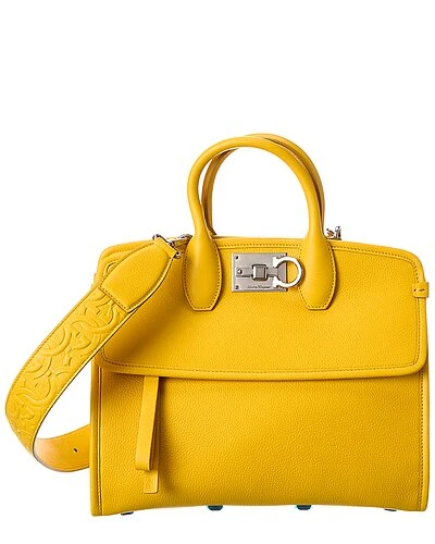 - Studio Small Leather Satchel in yellow leather with gold-tone hardware, Gancini detail and exterior pocket