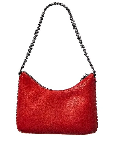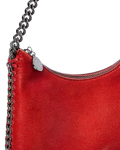- Falabella Zip Mini Shoulder Bag in red vegan-friendly faux suede with silver-tone hardware and chain trim