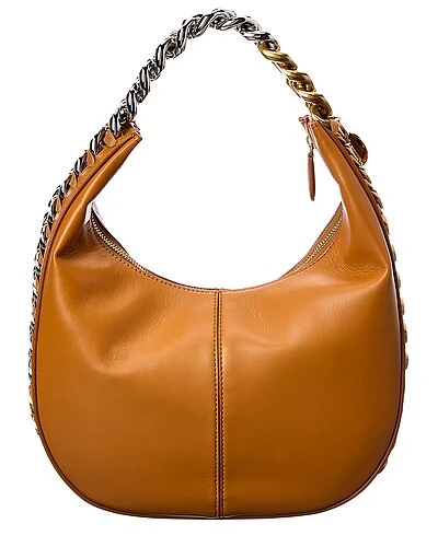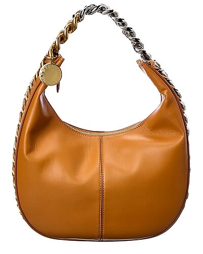 - Frayme Small Zipit Hobo Bag in brown vegan-friendly faux leather and gold-tone and silver-tone hardware with chunky chain trim