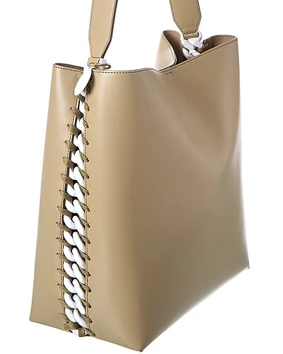 - Frayme Tote in bamboo vegan-friendly faux leather and gold-tone hardware with chunky chain trim and logo charm