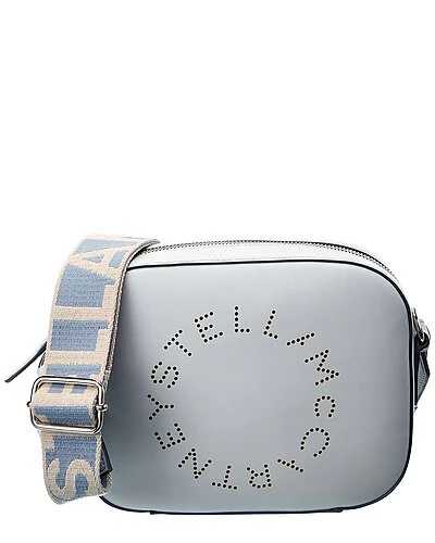 - Stella Logo Camera Bag in cloud blue vegan-friendly faux leather and silver-tone hardware with perforated logo