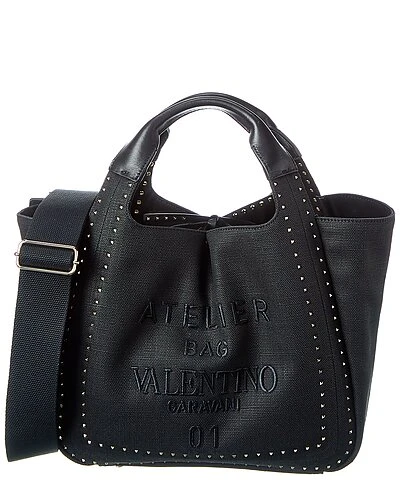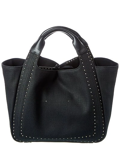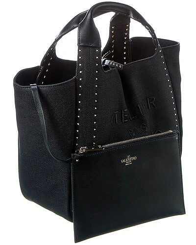 - Atelier Canvas & Leather Tote in black canvas and leather with silver-tone hardware and rockstuds