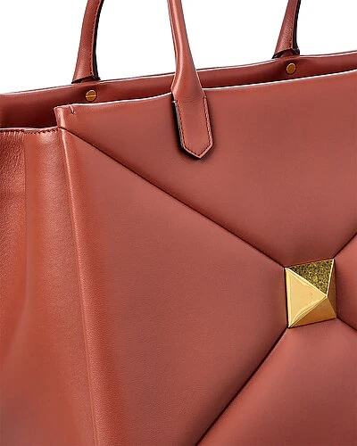 - One Stud Large Leather Tote in ginger leather and gold-tone hardware with Roman stud