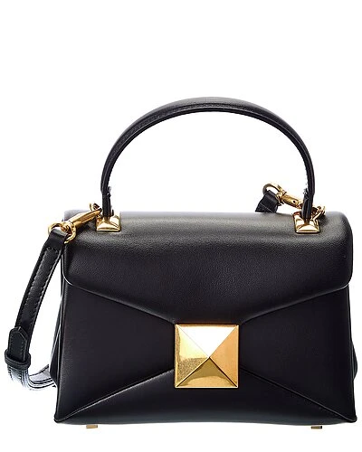 - One Stud Mini Leather Shoulder Bag in black leather and gold-tone hardware with Roman stud and chain strap