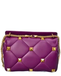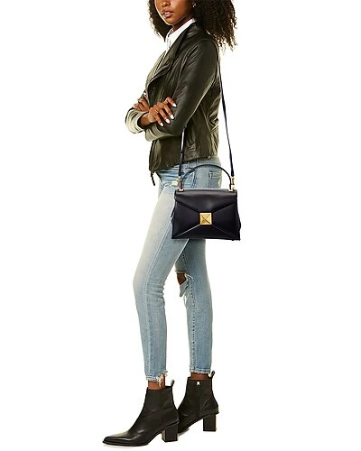 - One Stud Small Leather Shoulder Bag in black leather with gold-tone hardware and Roman stud