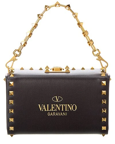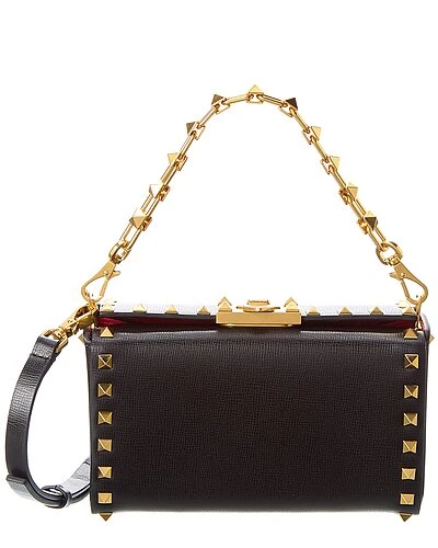 - Rockstud Alcove Leather Shoulder Bag in black leather and gold-tone hardware with chain detail and rockstud trim